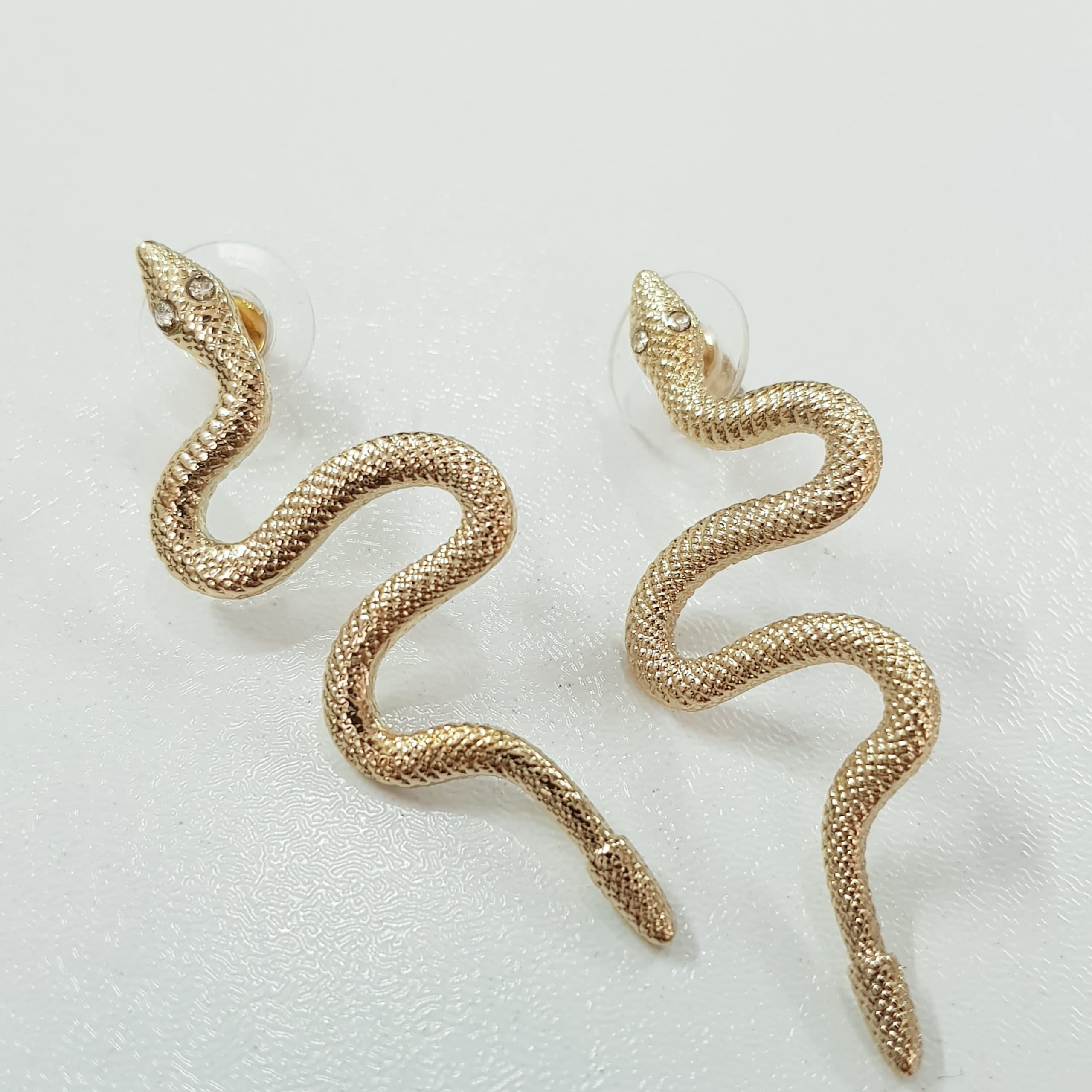 گوشواره آبکاری طلا طرح مار ، کار فوقالعاده زیبا و درخشان پر از جزئیات ، برند TOSH آلمان ضد حساسیت برند TOSH آلمان