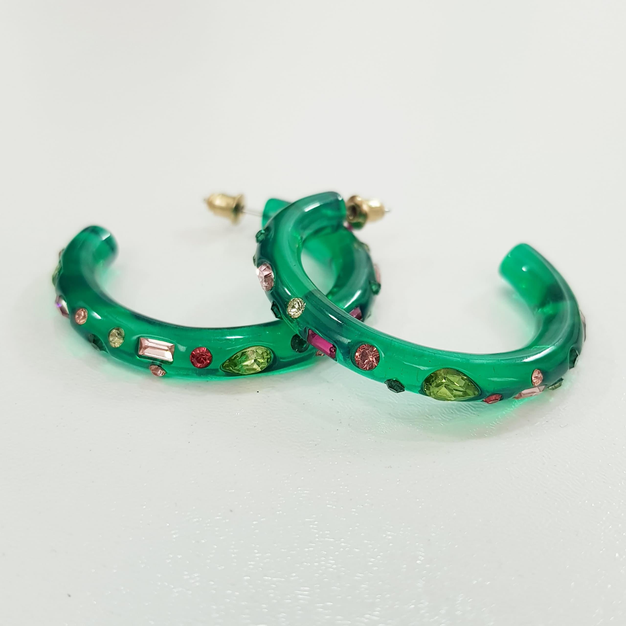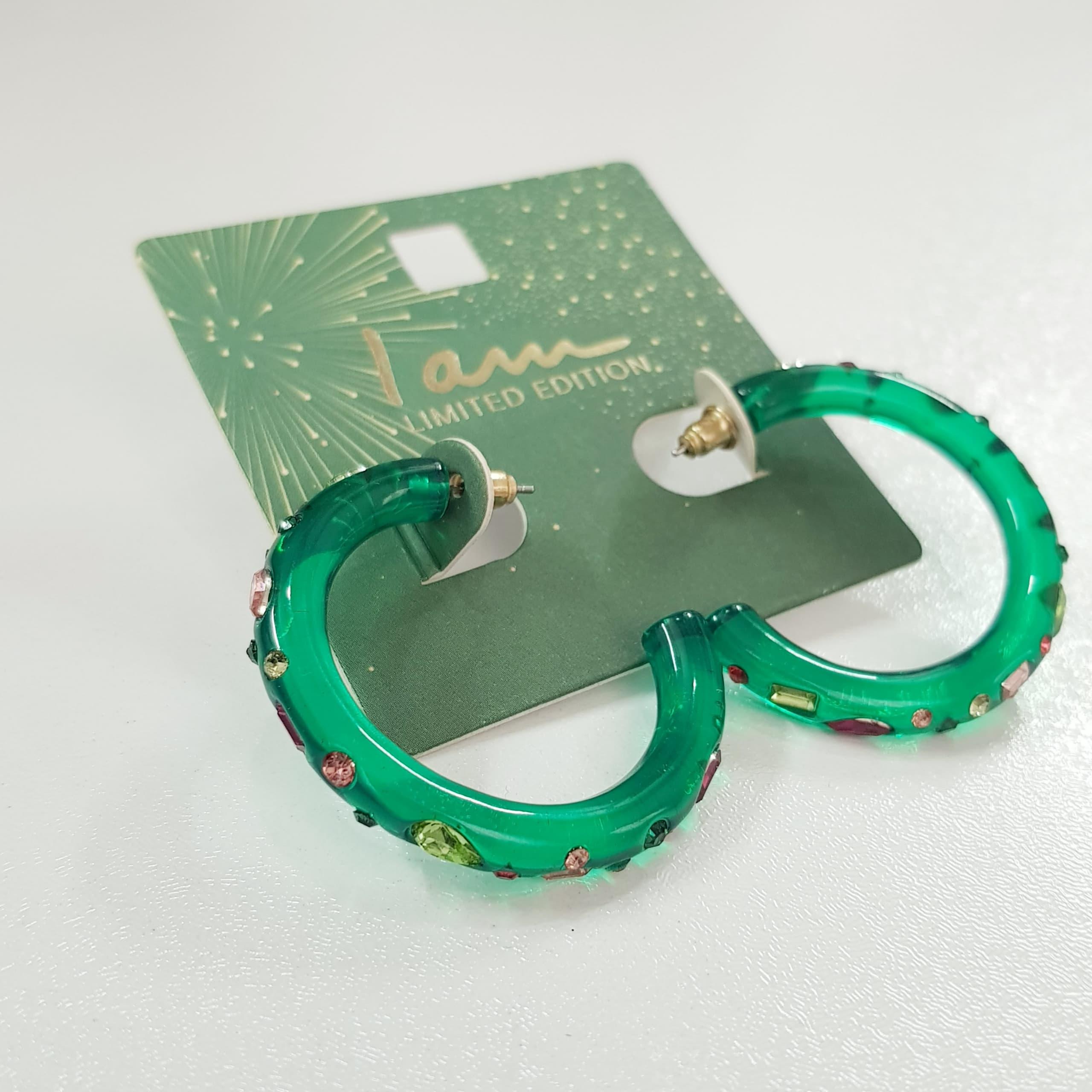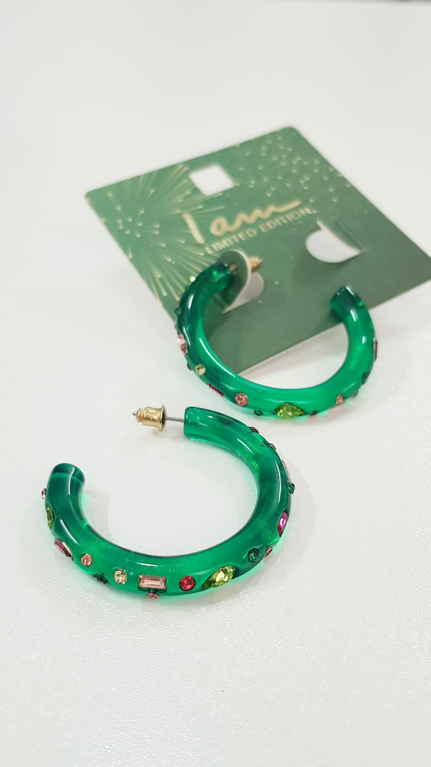 گوشواره حلقه ای سبز کار شده با نگین های مولتی کالر ، کار فوق العاده زیبا و درخشان، سری لیمیتد ادیشن ضد حساسیت برند iam تحت لیسانس آمریکا
