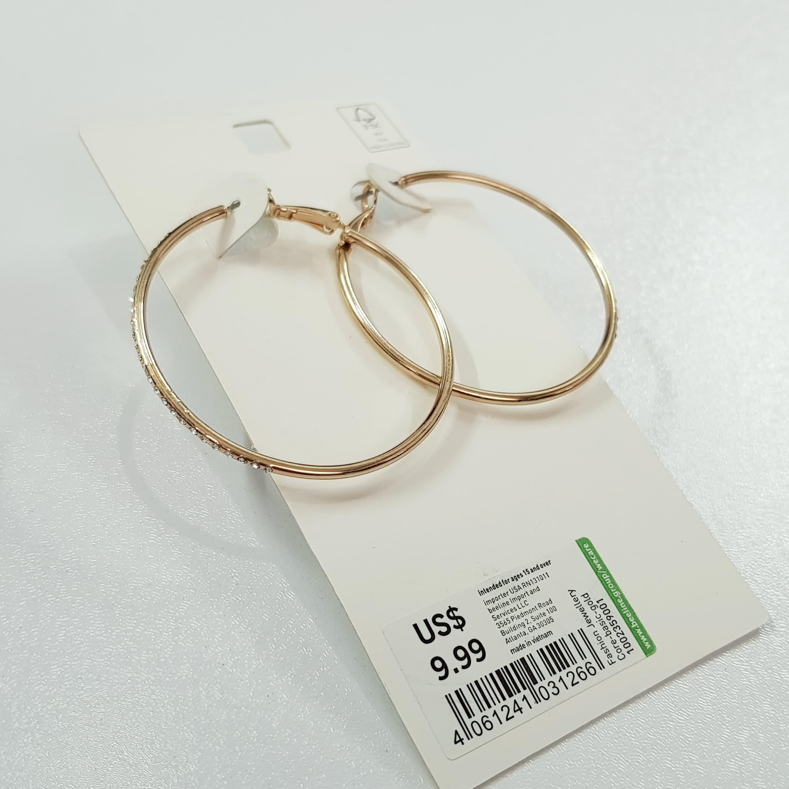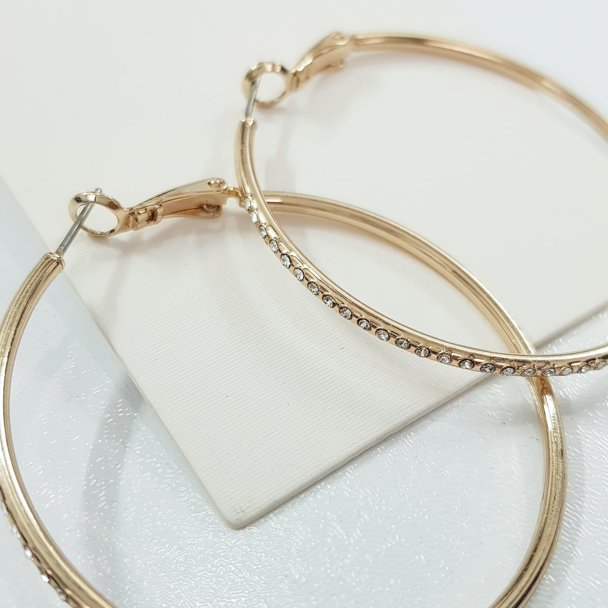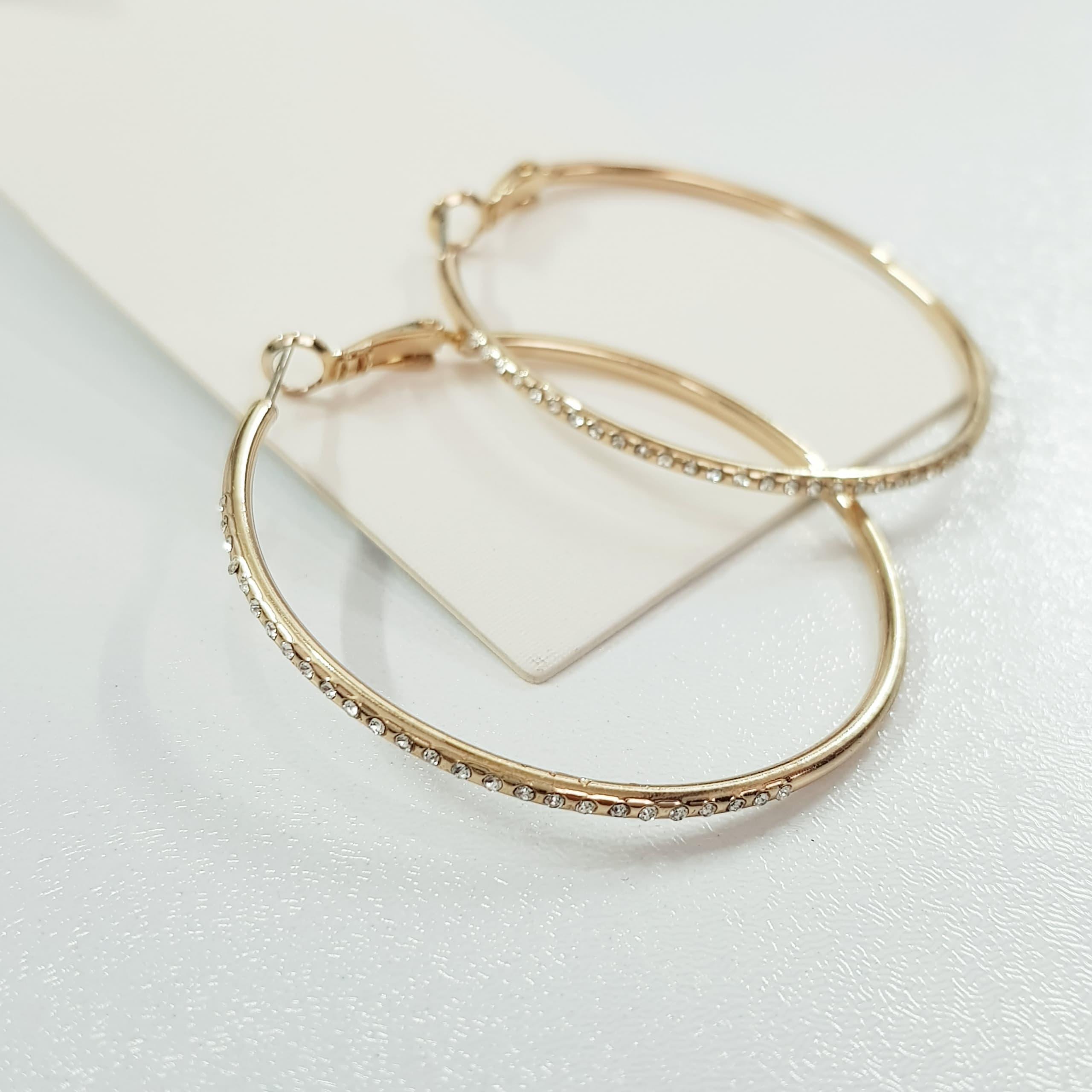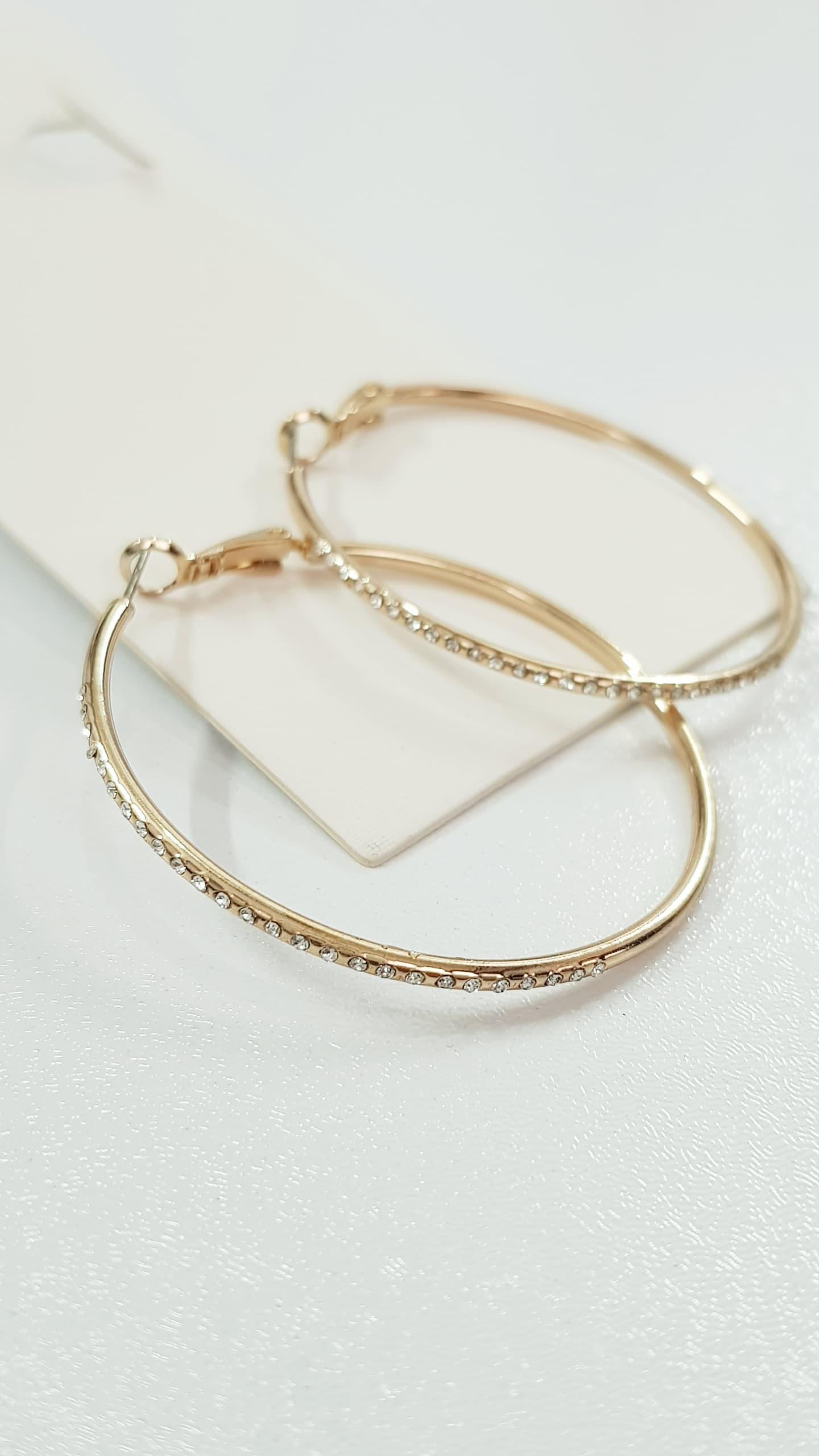 گوشواره حلقه ای طلایی کار شده با نگین های اتمی ، کار فوقالعاده حرفه ای و زیبا ضد حساسیت برند iam تحت لیسانس آلمان