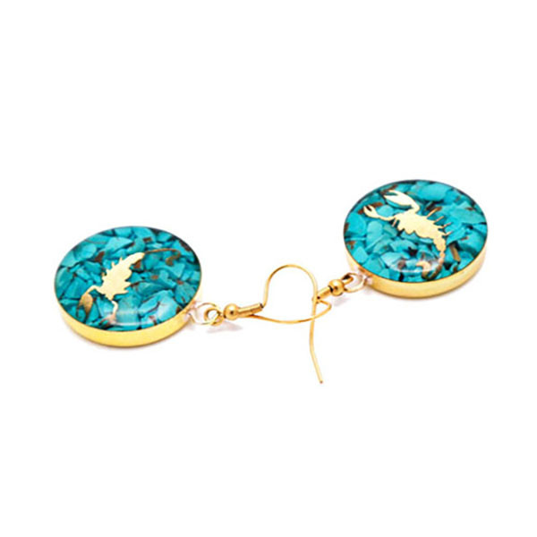 این گوشواره خاص، با بهره‌گیری از نماد ماه آبان (برج عقرب) و طراحی مدرن، جلوه‌ای منحصربه‌فرد به استایل شما می‌بخشد. زمینه گوشواره از سنگ طبیعی فیروزه با رنگ درخشان و بافتی بی‌همتا ساخته شده است که انرژی مثبت و حس تازگی را منتقل می‌کند. نماد عقرب، که ظریف و دقیق اجرا شده، دارای روکش طلا با ضخامت ۵ میکرون است؛ این میزان ضخامت، دوام و درخشندگی بلندمدت را تضمین می‌کند و کیفیتی متمایز به محصول می‌دهد.