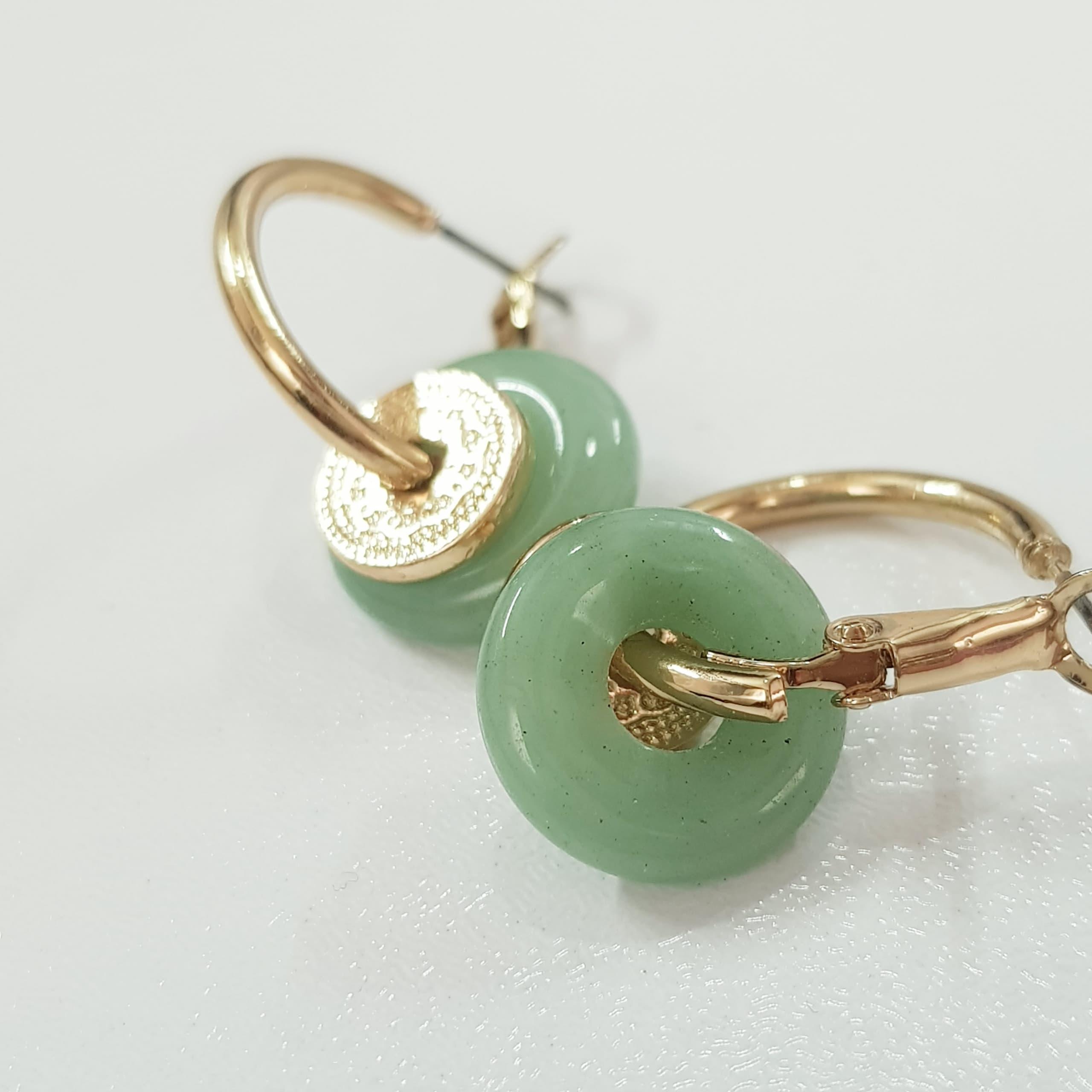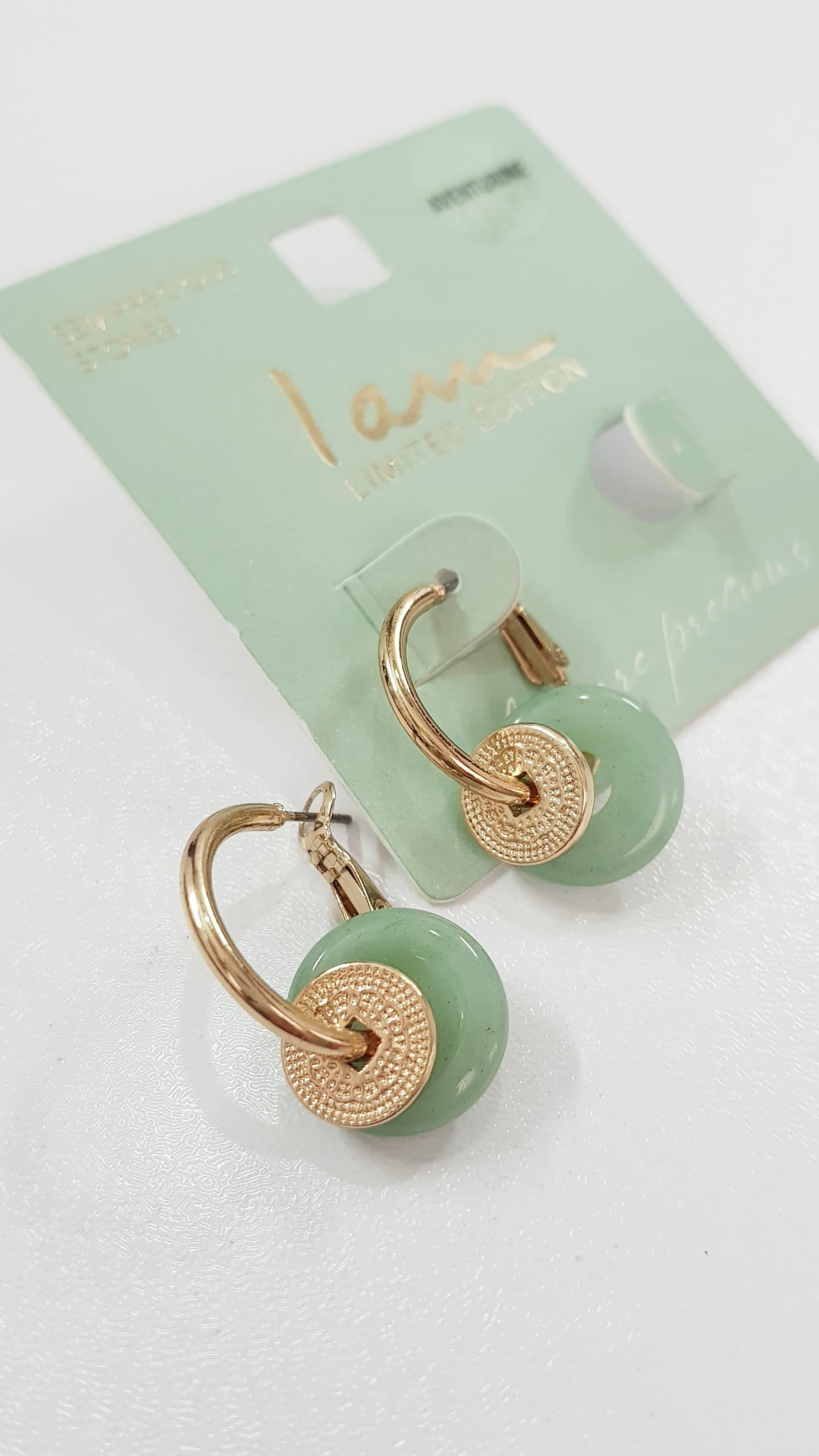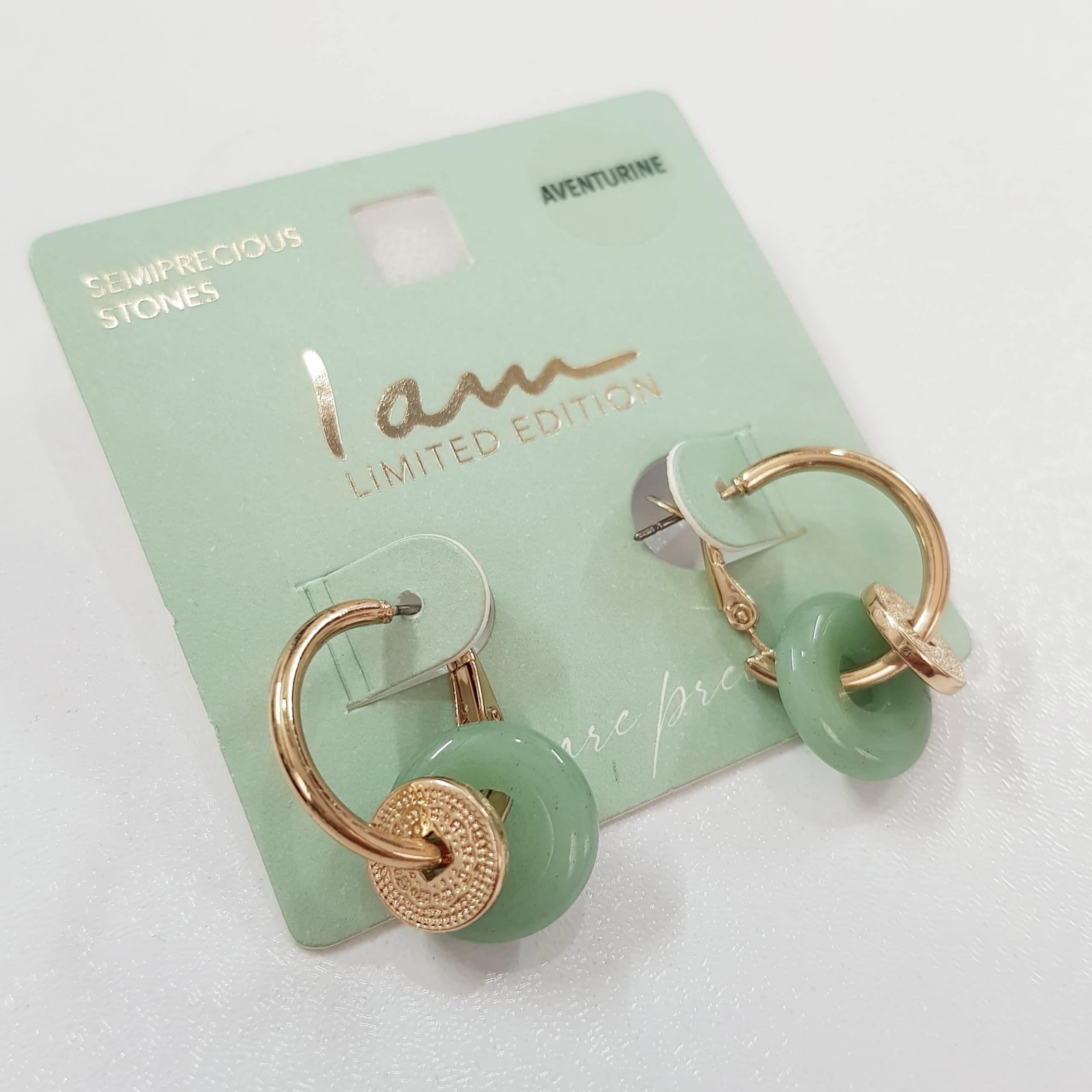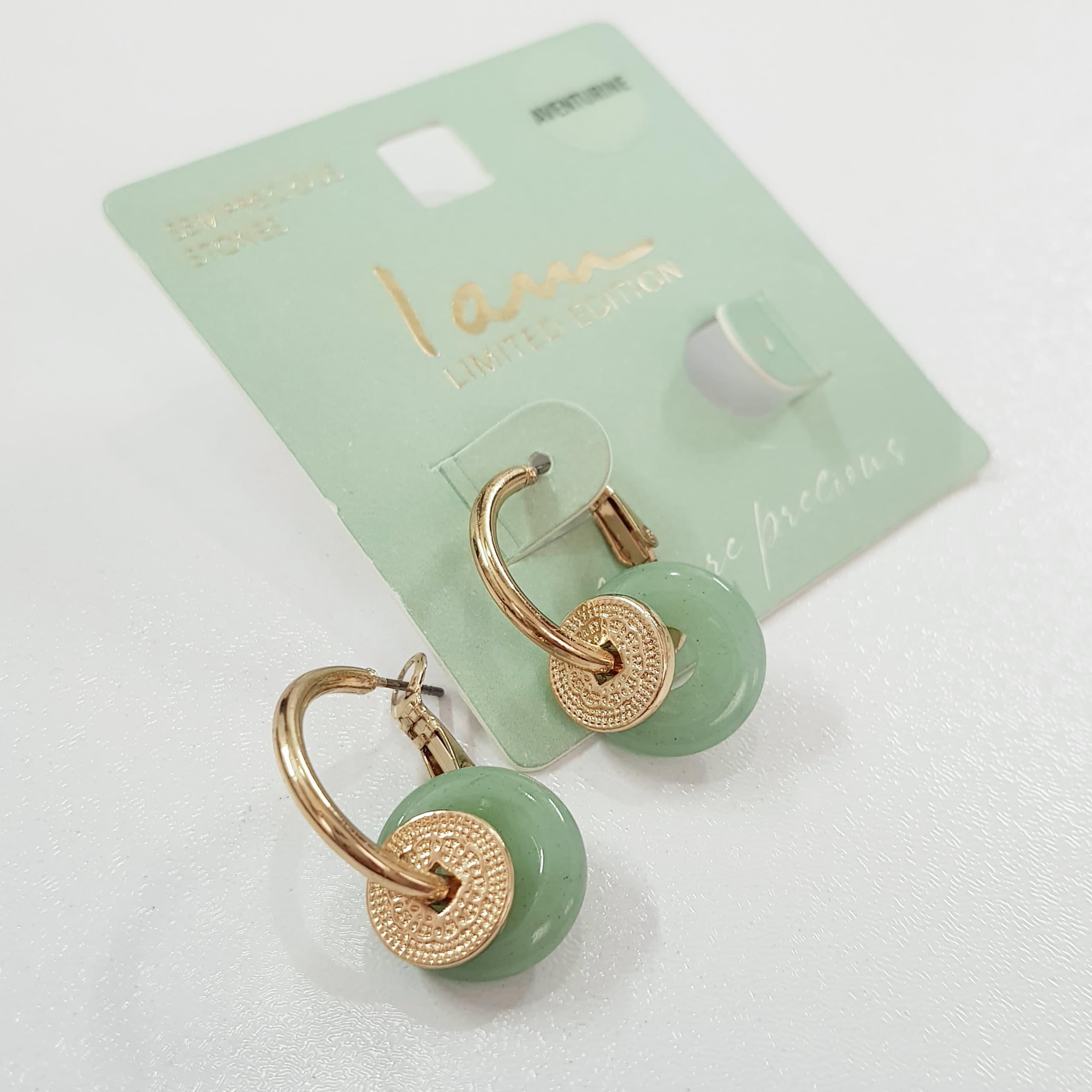 گوشواره طلایی آویز سنگ آونتورین سبز اصل، کیفیت فوق العاده عالی و بسیار زیبا ضد حساسیت برند iam تحت لیسانس آمریکا