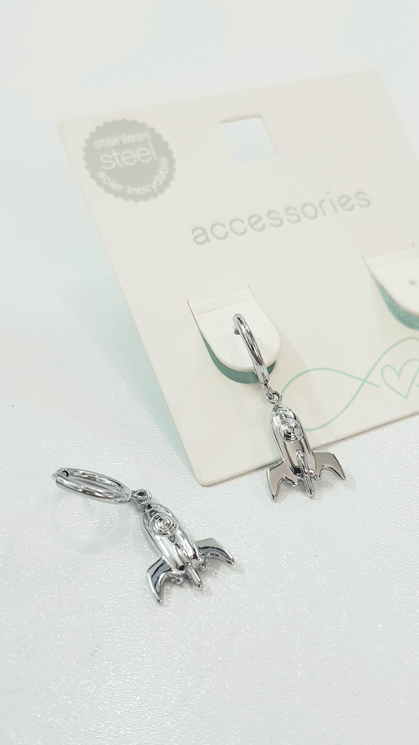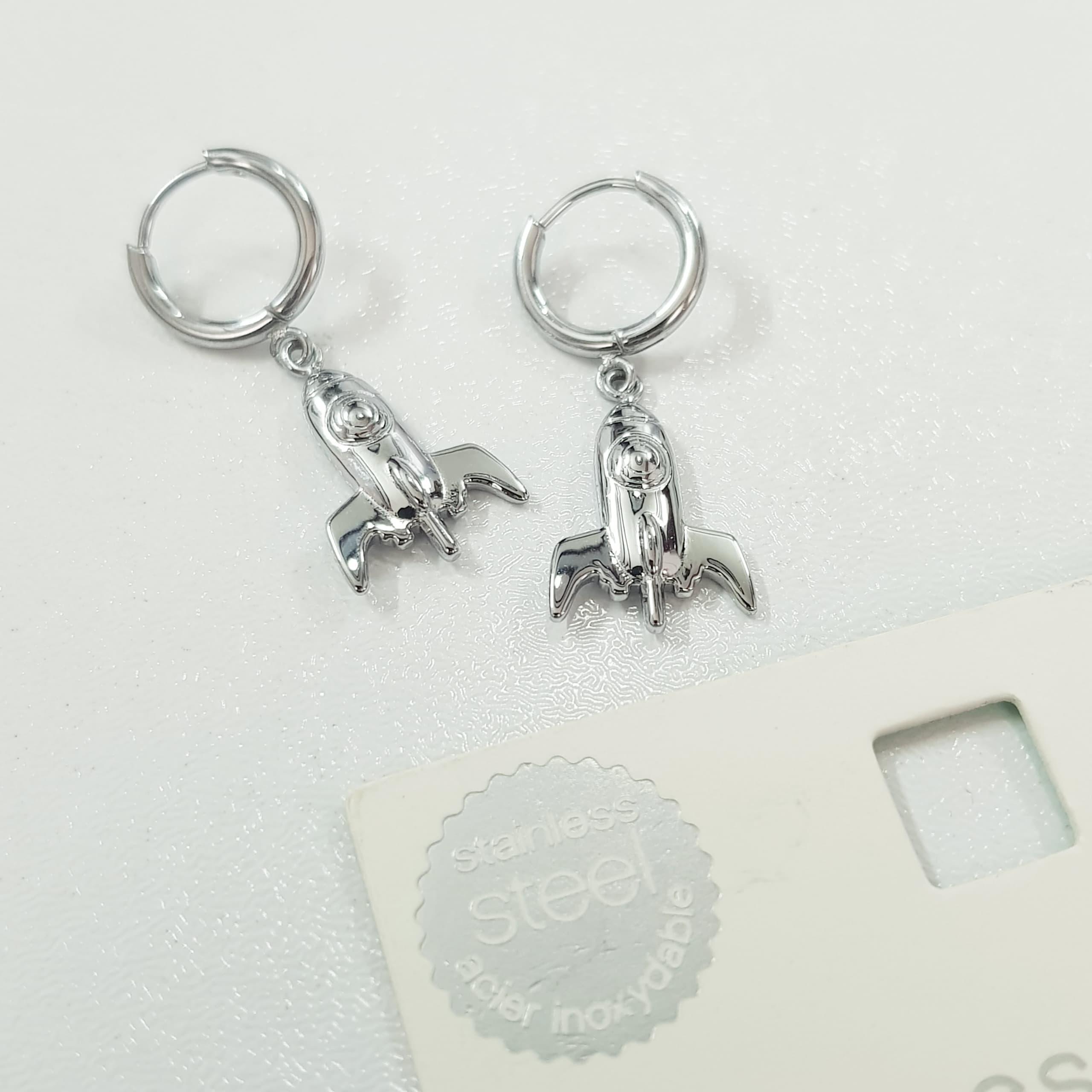 گوشواره قفلی استیل آویز موشک ، مناسب استفاده دائم روزانه ، کار فوق العاده کیوت و فانتزی رنگ ثابت و ضد حساسیت برند ACC تحت لیسانس آلمان