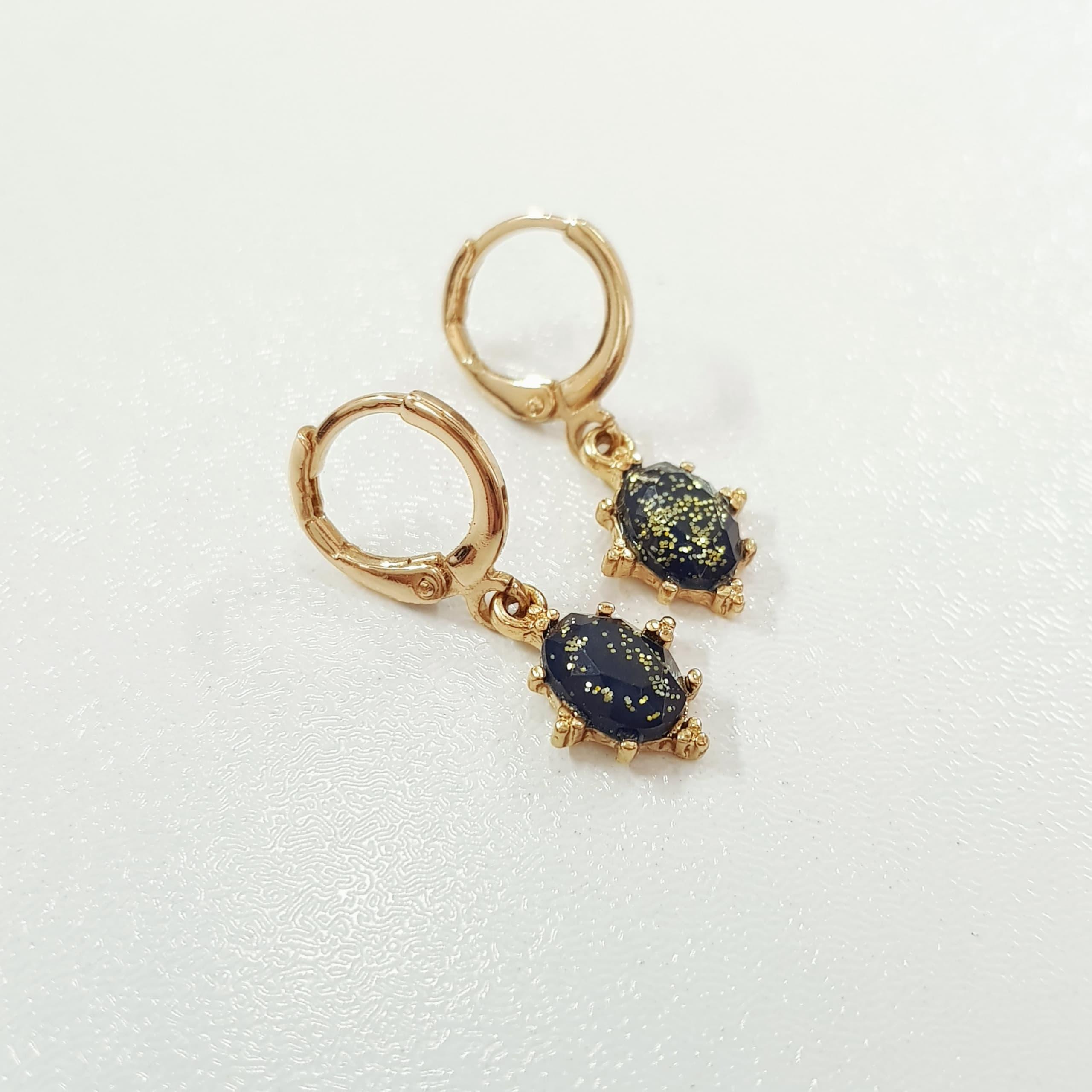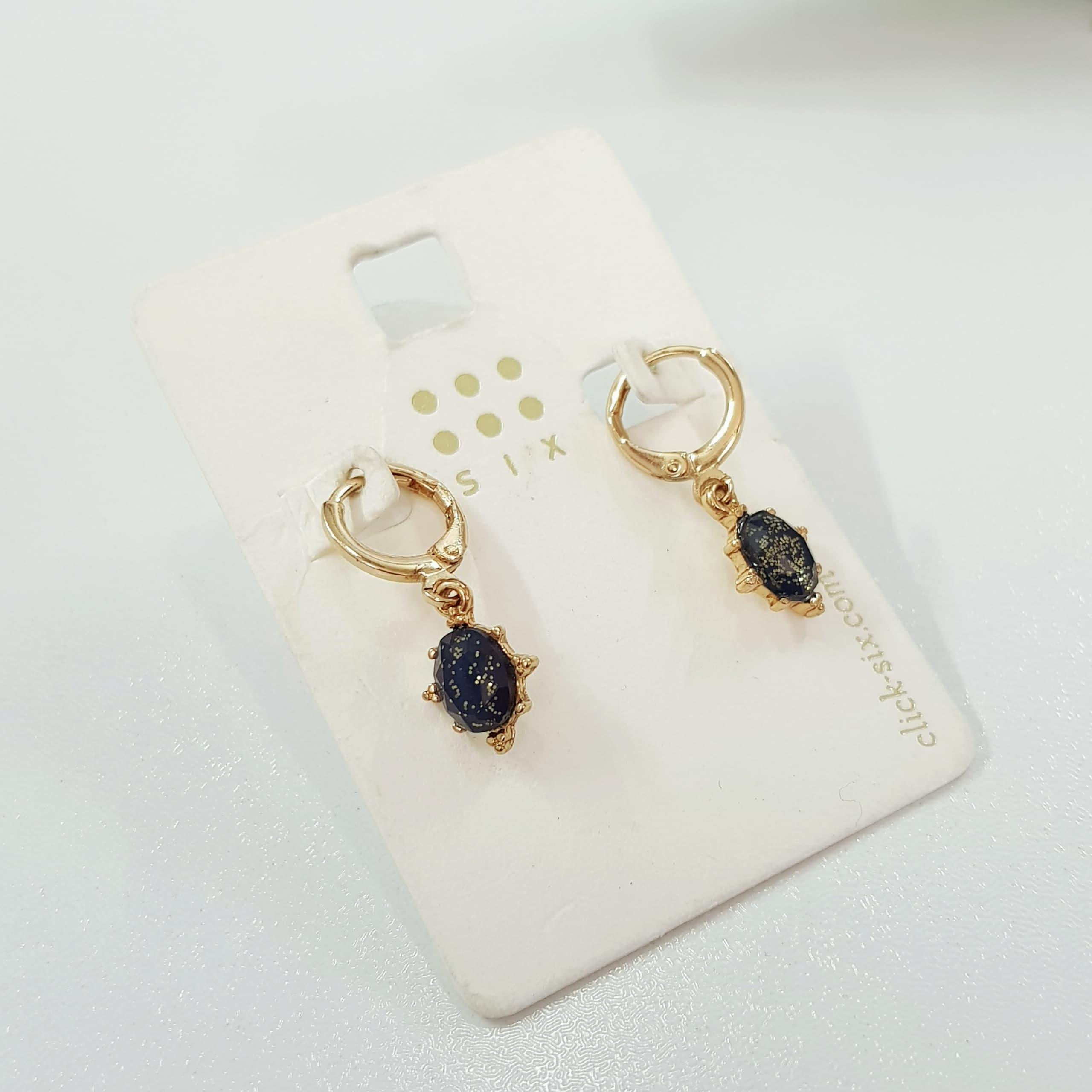 گوشواره قفلی طلایی آویز کریستال سرمه ای گلایتر، کار زیبا و ظریف ضد حساسیت برند Six تحت لیسانس آلمان
