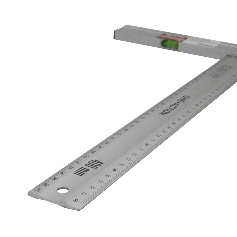 سایر توضیحات- گونیا وان اکشن مدل تر از دار - بدنه و دسته آلومینیومی - اندازه : 40 سانتی متر ( 400 میلی متر ) - دارای آب تراز بر روی دسته - دو طرف گونیا دارای مقیاس اندازه گیری - واحد اندازه گیری: سانتی متر و میلی متر - تراز داخلی: برای اندازه گیری دقیق زوایای 90 درجه