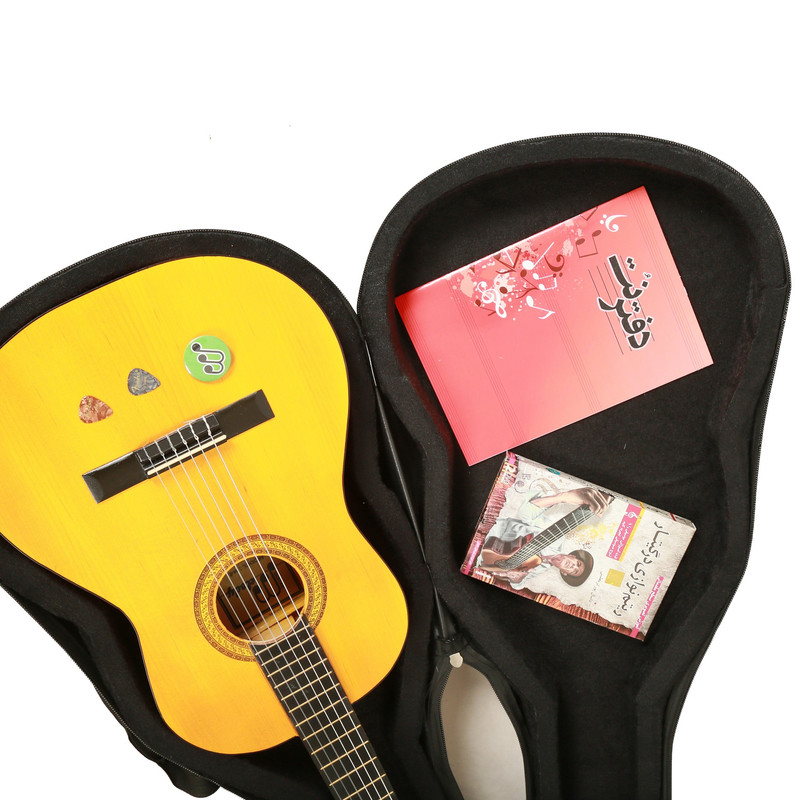 گیتار ملودی خوش دست و خوش صدا و خوش سیما مدل m4 ساخت ایران است . و یک گیتار محکم و با کیفیت است.این گیتار به افرادی که قصد دارند نواختن گیتار را شروع کنند کمک زیادی خواهد کرد؛ چون می توانند با پرداخت هزینه بسیار کم صاحب یک گیتار باکیفیت شوند که در سطح رقیبان خارجی خود و چه بسا بالاتر از آن ها کیفیت دارد و تا سال ها و سطوح بالاتر هم می توانند از نواختن آن لذت ببرند؛ به همین جهت است که بسیاری از اساتید موسیقی این گیتار را به هنرجویان خود پیشنهاد میدهند.سایز این گیتار ۴/۴ است که مناسب رده سنی یازده سال به بالا می باشد.صفحه رویی گیتار چوب صنوبر ساخته شده است. چوب صنوبر گرمی و نوای خوشی به صدای ساز می بخشد و شما هنگام تمرینات طولانی از صدای ساز خسته نخواهید شد.ما تلاش کردیم با تکنولوژی و دانش بومی و استادکاران حرفه ایی و بهره مندی از مواد اولیه با کیفیت محصولی را تولید کنیم که در کنار قیمت مناسب از صدای خیلی خوبی نیز برخوردار باشد. همراه با گیتار شما مضراب گیتار و دفتر نت و سی دی اموزشی و کیف ضدضربه نیز دریافت خواهید کرد که از هر حیص یک پکیج استاندارد و کامل را در دست داشته باشید