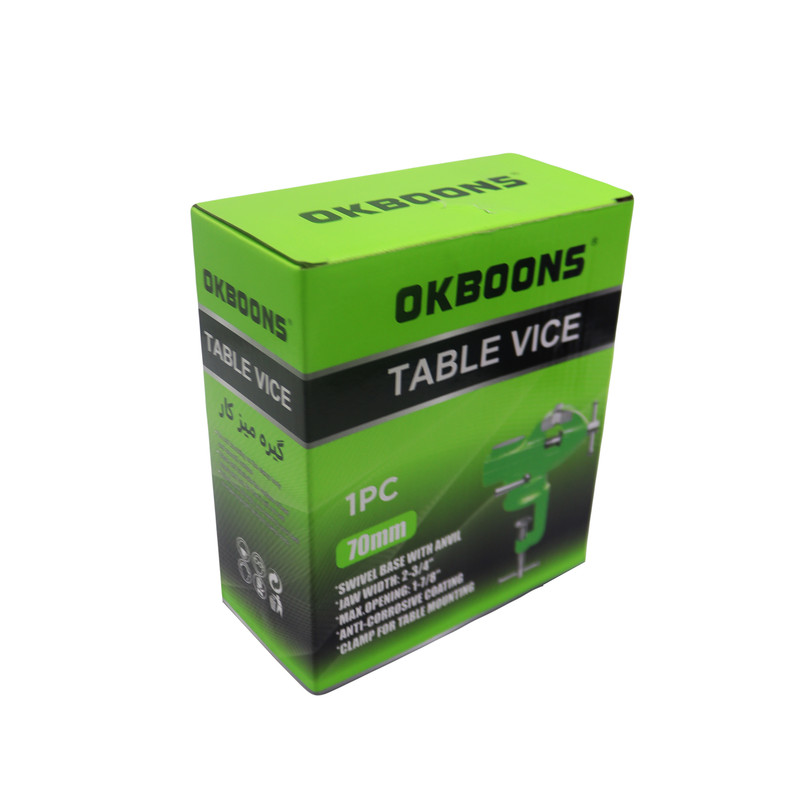| سایر توضیحات | - گیره بغل میزی اوکنبوس - سایز 70 میلی متر - بدنه فولادی محکم و مقاوم تولید شده به روش ریخته گری مناسب برای کار با فلزات و چوب - حلقه اتصال به میز مطمئن پایه گردان با چرخش ۳۶۰ درجه مناسب برای کارهای ظریف و میناتوری ولحیم کاری - قطعات پایه گردان دارای قفل مناسب برای زرگرها ، مجسمه سازها ، دانشجویان معماری - کیفیت بالا |