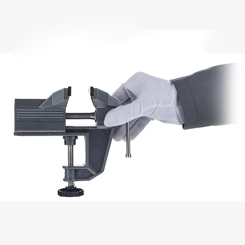 | سایر توضیحات | - گیره بغل میزی سیلور - قابل نصب روی لبهی میز با حداکثر ضخامت 50 میلیمتر - کیفیت ساخت مناسب محکم و با دوام ساخته شده از مواد با کیفیت - نصب سریع و آسان مقاومت زیاد در برابر فشار بالا - قابلیت نصب بر روی میز با ضخامت حداکثر 30 میلیمتر - قابلیت باز شدن دهانه تا 65 میلیمتر - ساخته شده از آلیاژ دایکاست - جنس بدنه آلومینیومی - جنس دسته فلز آبکاری شده ضد زنگ - دارای محافظ دهانه از جنس پلاستیک نرم - مجهز به فک و پایه گردان به هر جهت - دارای لوازم جانبی دارای پایه وکیوم قوی جهت اتصال به میز کار - عرض فک دهانه 70 – 80 میلی متر |