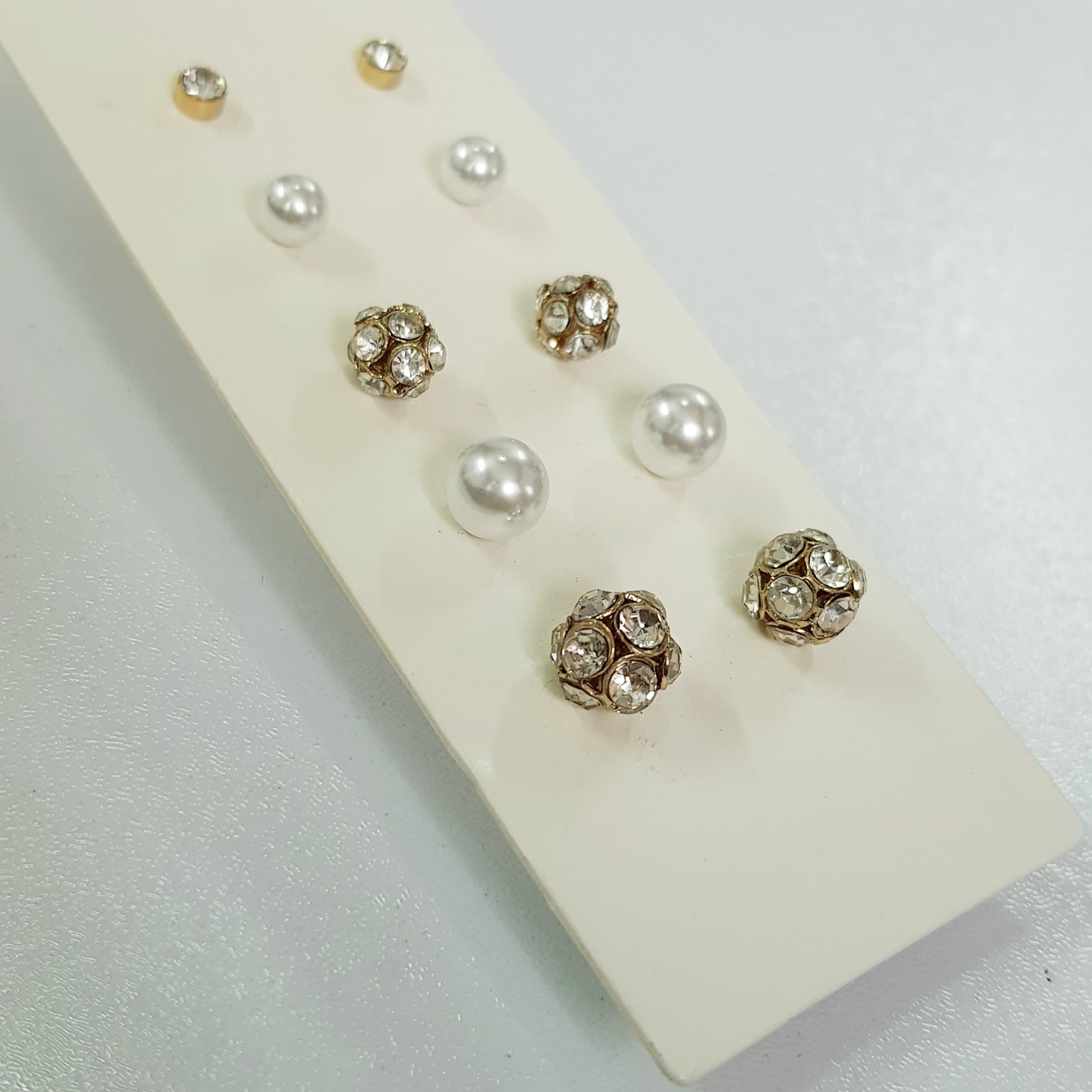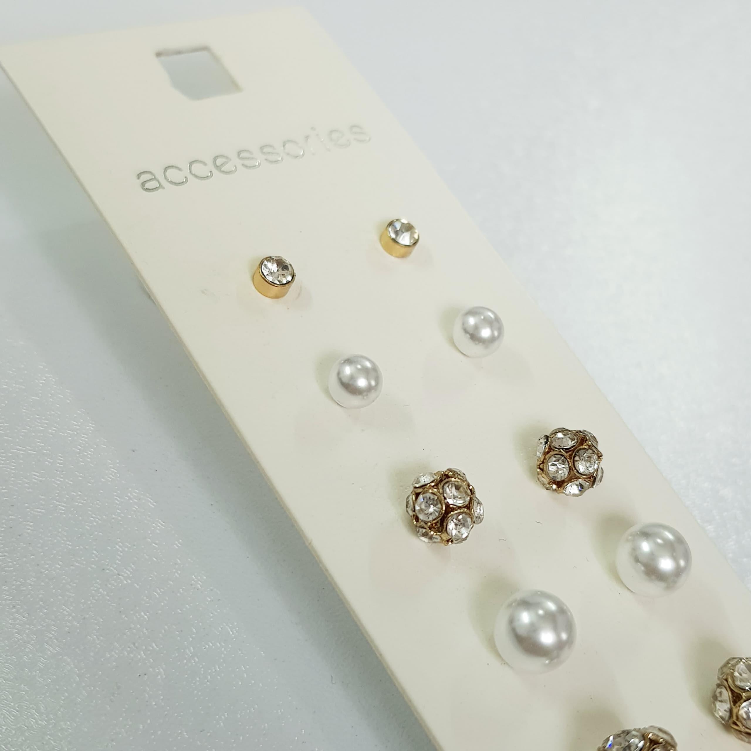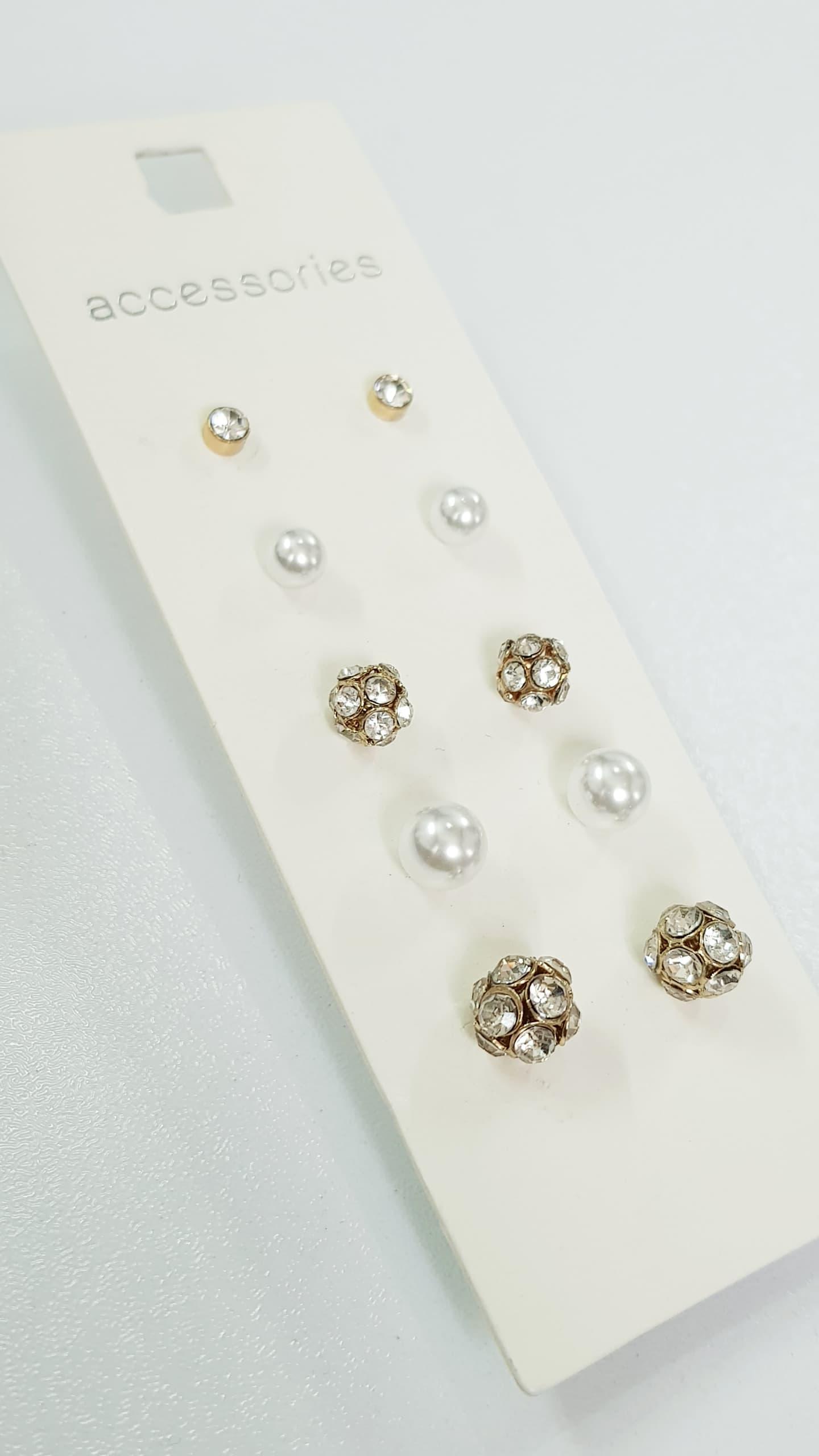 پک پنج جفتی اقتصادی گوشواره گلگوش طلایی نگین دار و مرواریدی ، کیفیت عالی رنگ ثابت و ضد حساسیت برند Accessories تحت لیسانس آلمان